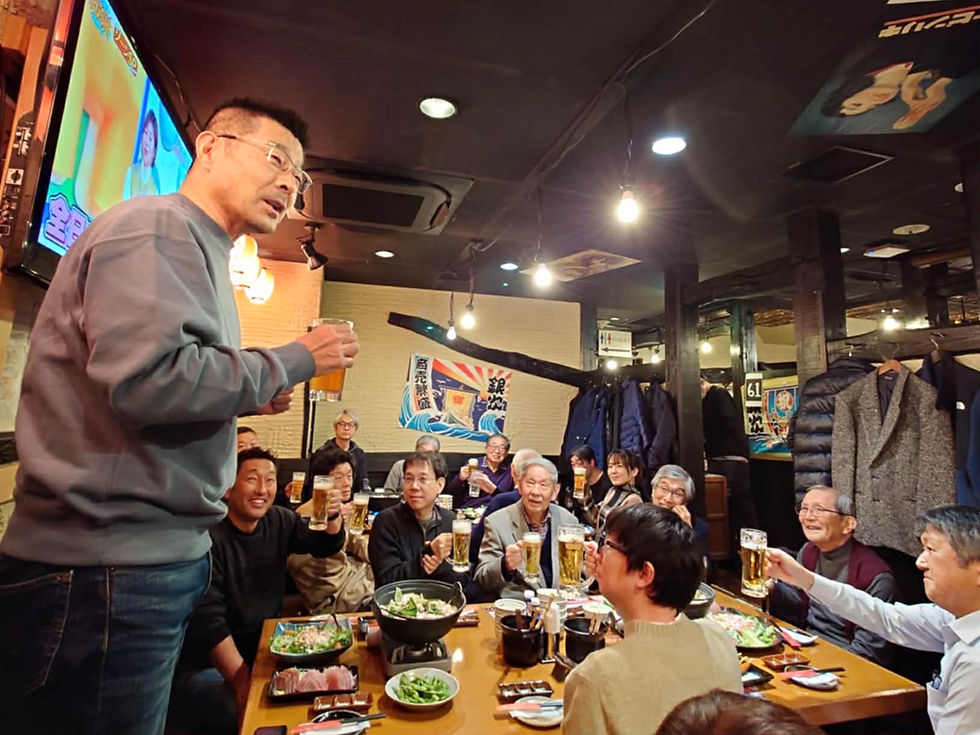 その後の懇親会では、熱田副会長や坪内理事、正会員と準会員各1名も加わり24名となり、直接一緒に過ごせる時間ならではのにぎやかな雰囲気で盛り上がりました。